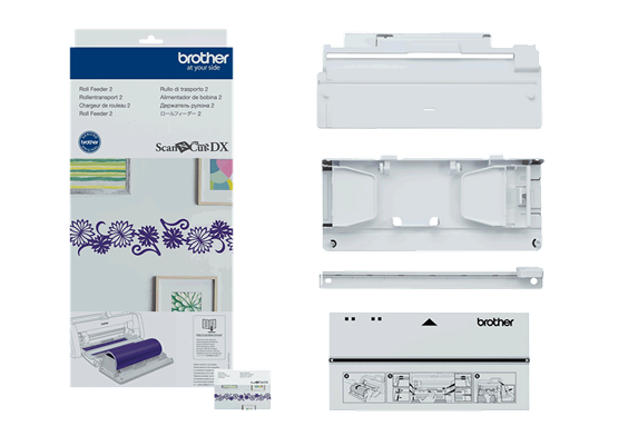 Mit dem ScanNCut DX Rollentransport 2 können Sie auch mit der Vorderseite nach außen weisendes Material zuführen und bis zu 0,5 mm dickes Material schneiden.