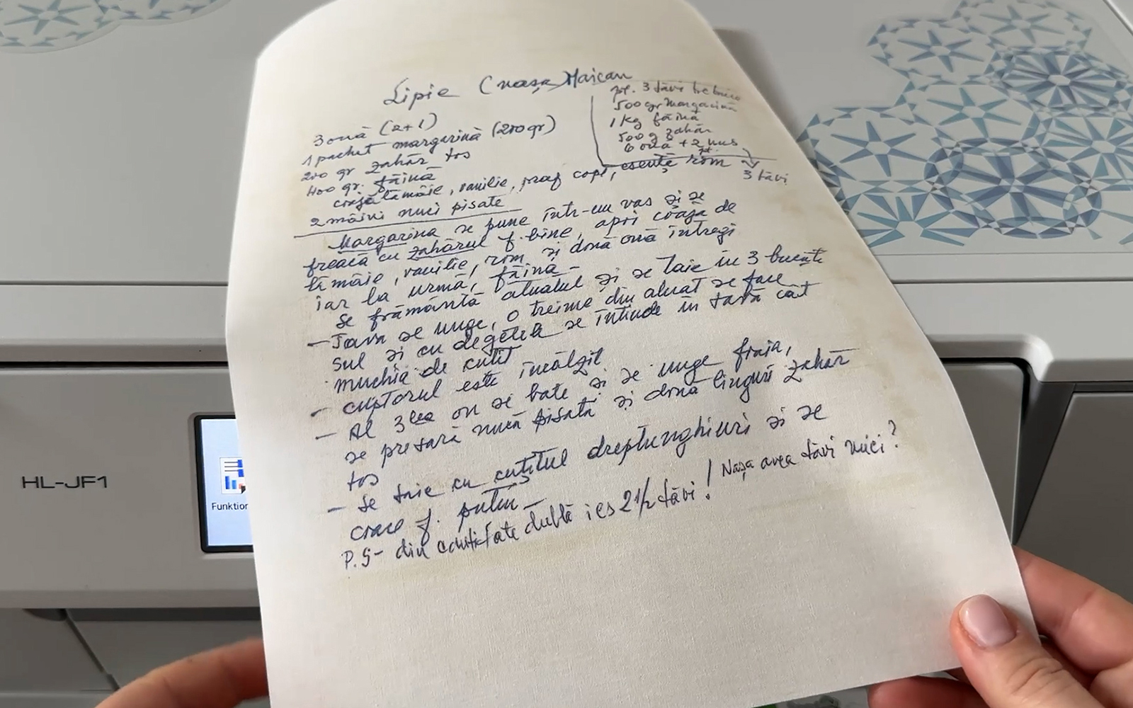 Scan the recipe and save it as an image file (.jpg), or take a photo of it with your mobile phone. Try to place the written part in the middle of the sheet of paper.
