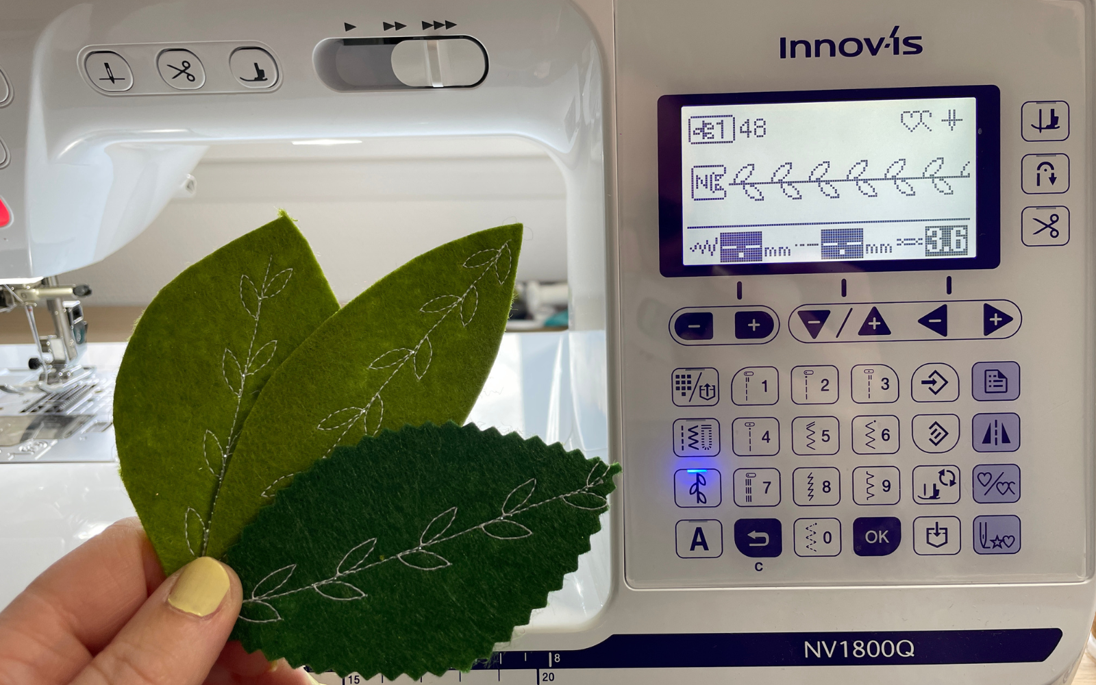 Cut out the felt shapes of your choice – I used leaves. Decide which decorative stitching design you would like and select the corresponding stitch.