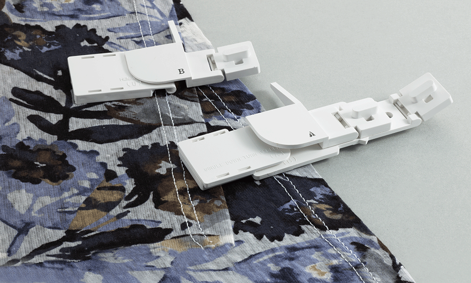 Réalisez des ourlets uniformes et professionnels à l’aide des différents guides de tailles.