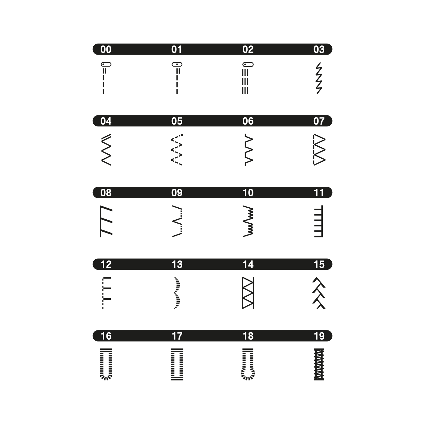 Scegli tra 20 punti inclusi: una varietà di punti utili e decorativi, oltre 3 tipi di asola in un unico passaggio.