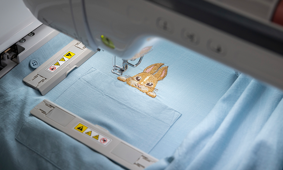 Ottieni una precisione assoluta con il puntatore LED che indica il punto di caduta dell'ago, e che ti mostrerà esattamente il punto di inizio del ricamo. Posiziona i ricami lungo le linee di cucitura, sopra le tasche e lungo le abbottonature con la funzione di posizionamento a due punti.