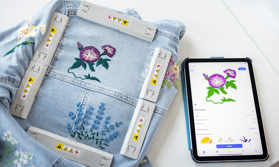 Le porte USB e la connettività wireless WLAN ti permettono di inviare alla macchina i tuoi ricami e quelli che hai creato o acquistato con un semplice tocco. Gli utilizzatori di Celeste possono dare libero sfogo alla loro fantasia con l'app di design mobile Artspira di Brother: potrai accedere a una vasta libreria di ricami, disegnare i tuoi ricami, convertire le tue immagini in ricami, acquistare ricami ispirati a Disney e molto altro ancora*!