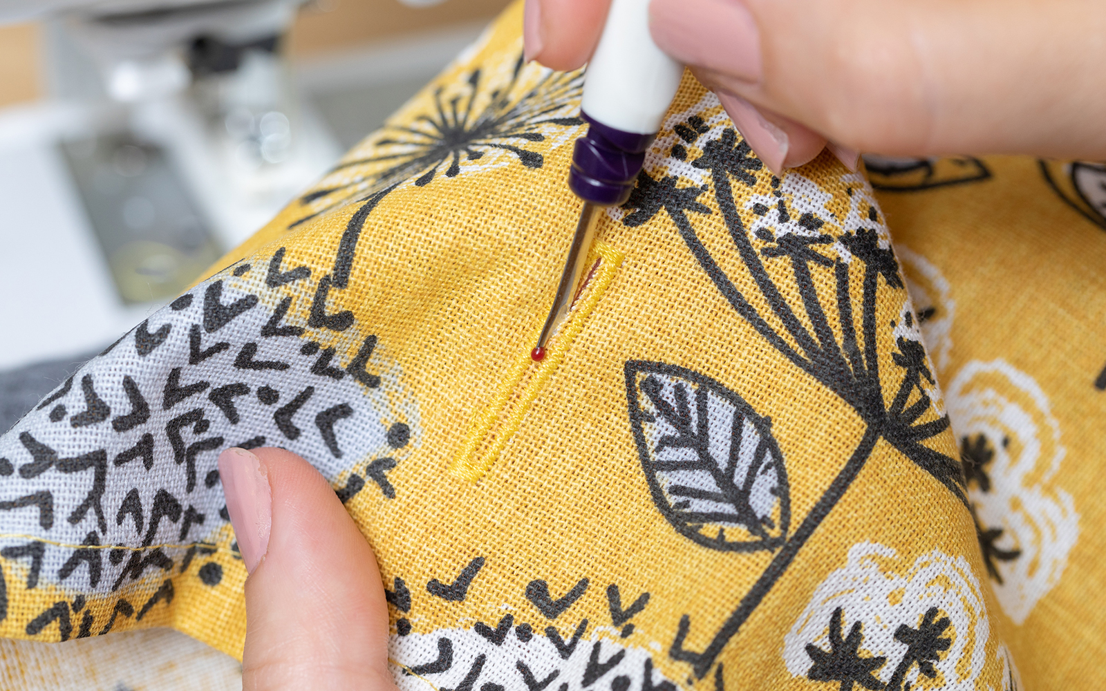 Teken met kleermakerskrijt of een verdwijnstift waar het knoopsgat moet komen.