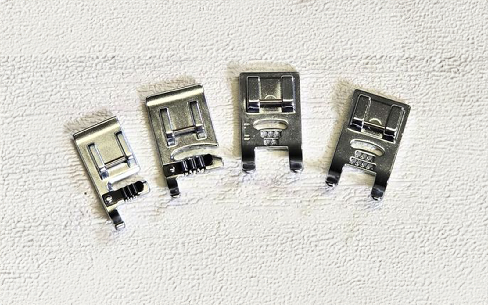 Deze kordonneervoetjes hebben een clip die de koordjes vasthoudt met aan de onderkant groeven om de koordjes in de juiste positie te houden.